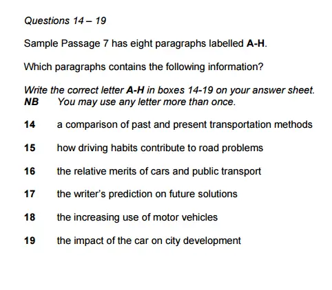 This question is taken from an academic sample paper. As you can see, you are given a number of statements and you are required to match these to the correct paragraphs in the reading text.