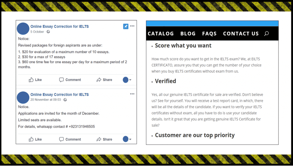 The image on the right promises IELTS success without even having to take the exam!