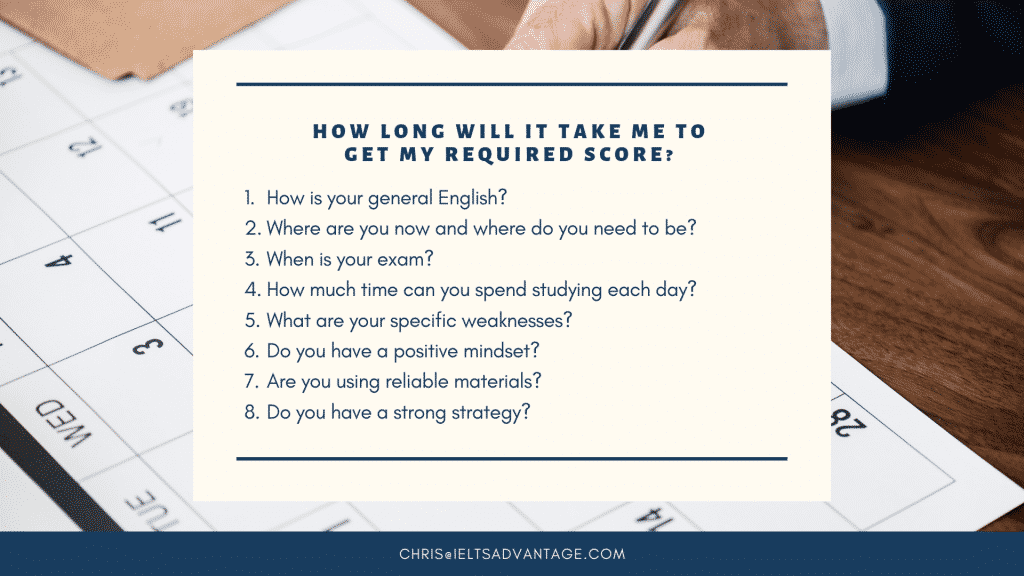 Below, I will list 8 questions you MUST ask yourself if you wish to determine how long it will take you to prepare for the IELTS exam: